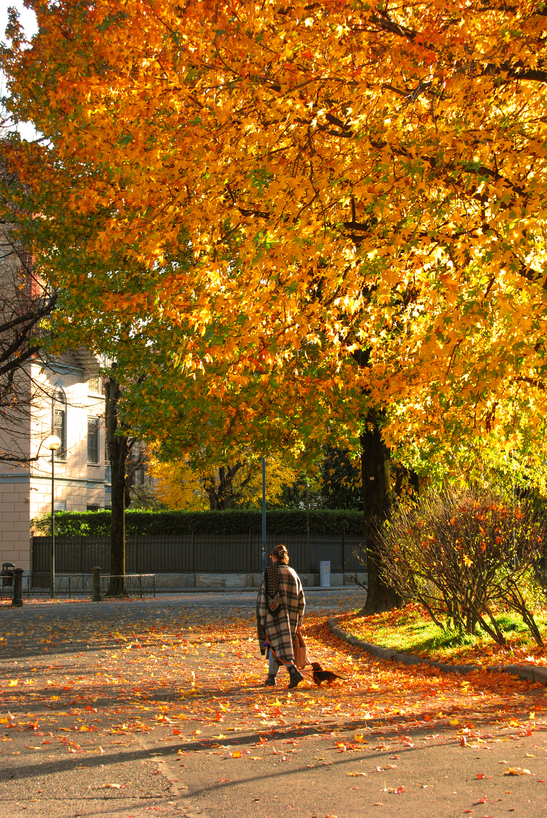 Autumn warm colors meet the hectic daily life and its gloomy grey fog